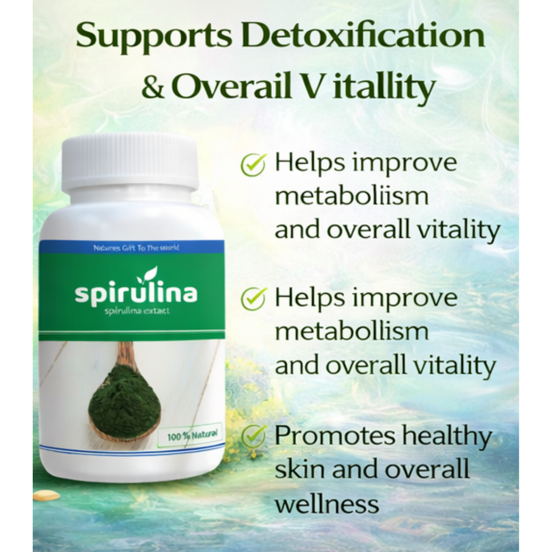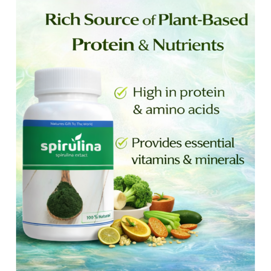 Spirulina Tablets are a highly nutritious superfood supplement made from pure Spirulina, a blue-green algae known for its exceptional protein content and rich nutrient profile. Packed with vitamins, minerals, antioxidants, and essential amino acids, Spirulina supports overall health, boosts immunity, and enhances energy levels naturally.