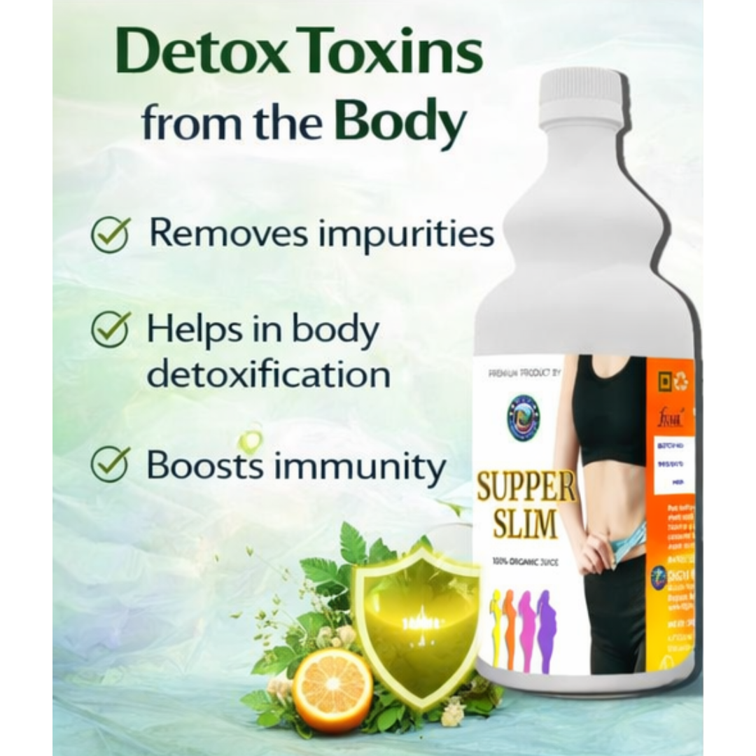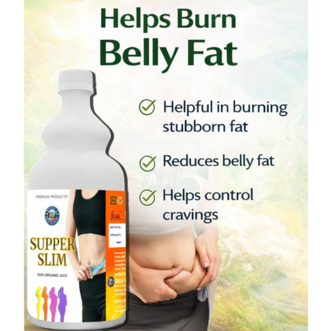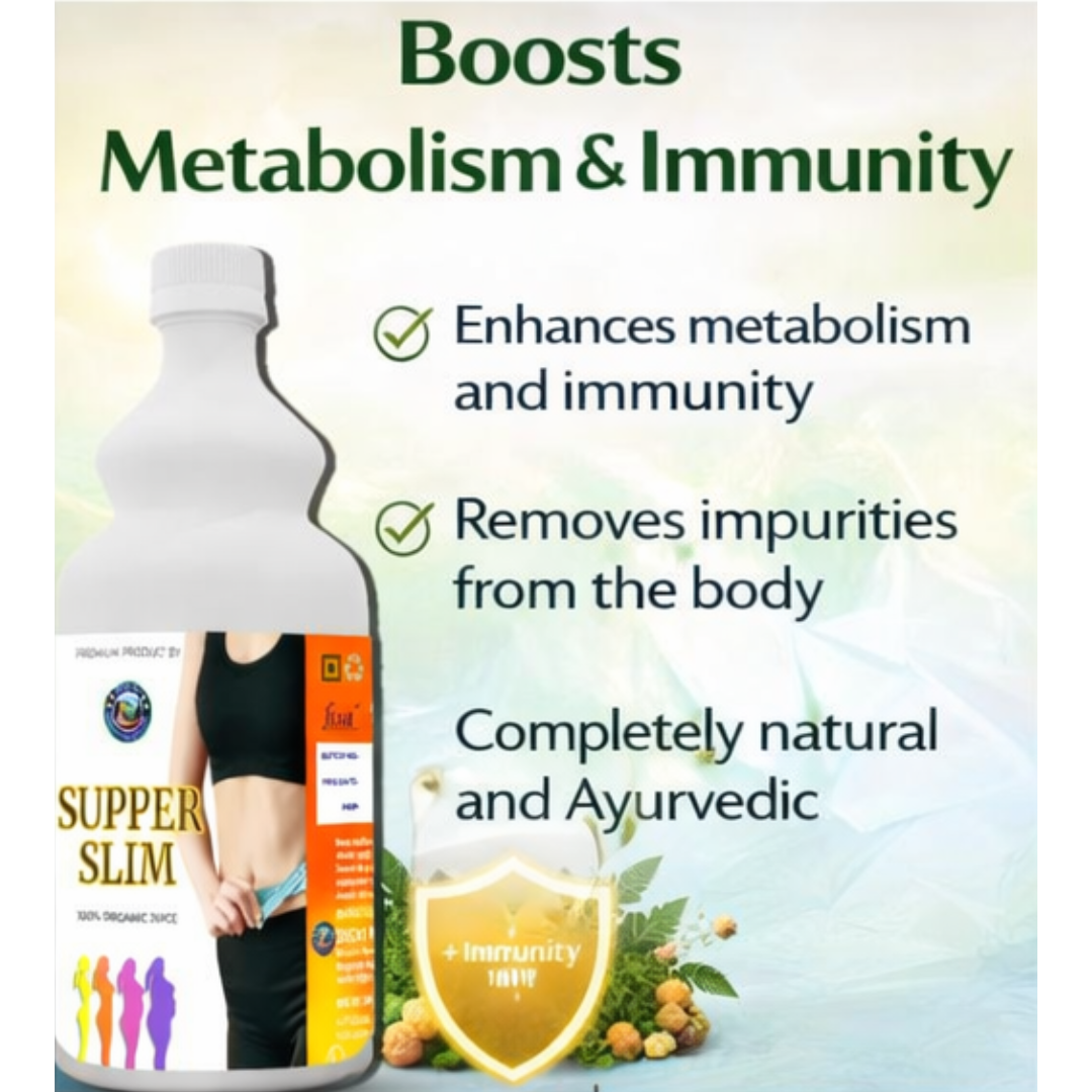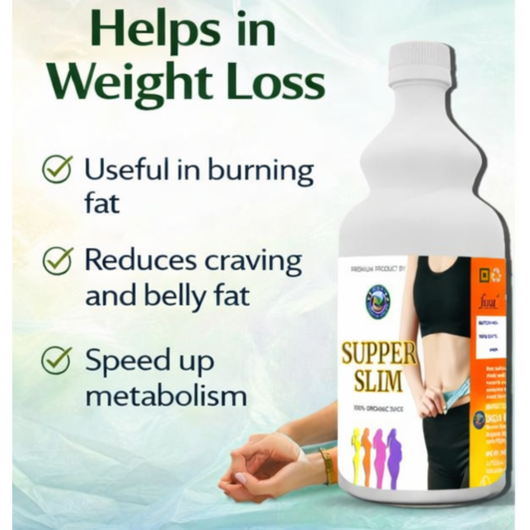 Super Slim Juice is an advanced Ayurvedic formulation designed to support healthy weight management, improve metabolism, and detoxify the body naturally. Enriched with a powerful blend of herbal extracts, this juice helps in reducing excess fat, controlling cravings, and promoting a healthier lifestyle.